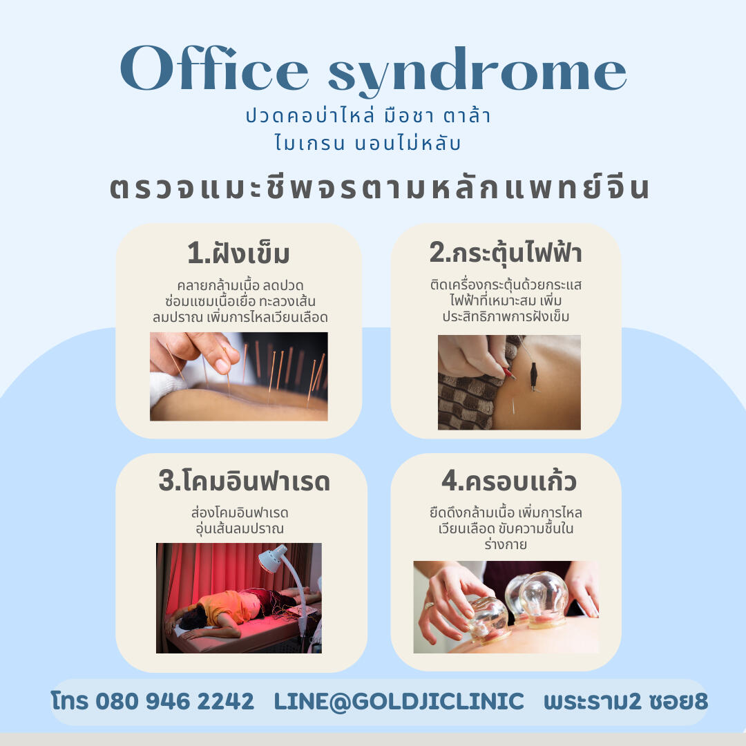 ฝังเข็ม • ครอบแก้ว • กวาซา • ยาจีน • ออฟฟิศซินโดรม • พระราม2